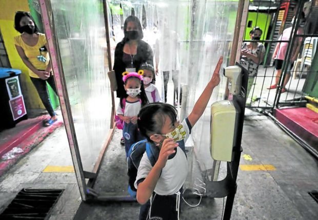 [ad_1] SCHOOL’S BACK Students pass through a booth for disinfection and temperature check at Aurora Quezon Elementary School in San Andres, Manila, during the first day of limited in-person classes in August. —RICHARD A. REYES No COVID-19 clusters had been detected in schools since limited in-person classes resumed in August,…